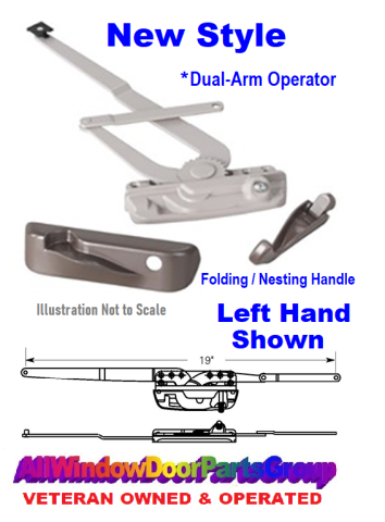 Biltbest Casement Window Encore Dual Arm Operator Replacement Package - Truth Dual Arm Operator with Folding / Nesting Handle and Cover. (As Shown - Is Included). Choose from Beige, Bronze, Chestnut Bronze, Clay, Coppertone, Gold, White - Please Specify in the Comment Section at Checkout. If No Color Is Specified, we will Ship Bronze.