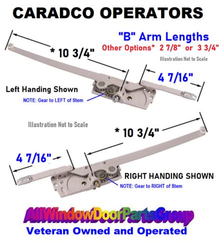 Caradco Old Style Crank Operators | Awning and Casement All Sizes, Caradco casement window, crank operator replacement part. Model # CRD-RFPI RIGHT or LEFT Handing, Standard 4 7/16" B/Arm.