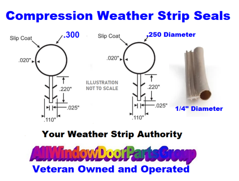 Caradco Replacement Window Parts - These Window Bulb Seals have a Single Kerf, SOLD ONLY IN PER EACH 100' ROLLS - .300 BULB DIAMETER for all styles of Windows requiring this style of sea. .250 Diameter also available.