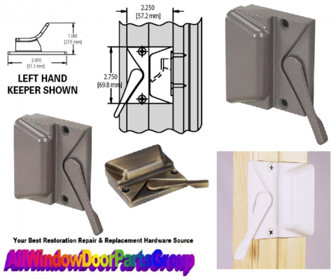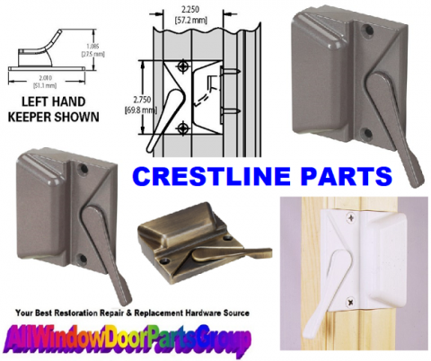 Window Sash Locks for Crestline Casement Windows - Parts for your old Crestline Casement and awning windows - availabhle in BRONZE, GOLD or WHITE "non-handed" Styles Complete with the keeper and mounting screws. These are a perfect "low-profile" sash lock option for your original windows with smaller side stops, and featuring a .625" pull-in. The home guardian sash lock window hardware has a smooth and contemporary styling and an impressive list of features. Also available by special order in other designer decorative "plated" finishes.