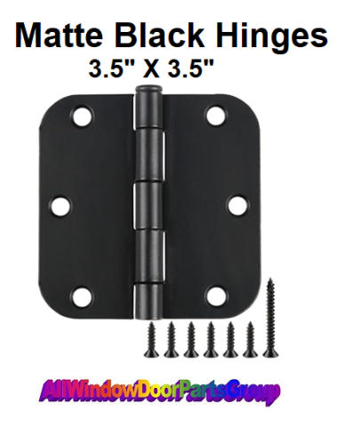 Door Hinges, Matte Black Finish, Six (6) Packs - Non-Adjustable Style Door Hinges. Rounded Door Hinges, 3.5” x 3.5”, 5/8” Radius, Matte Black – PER EACH (6) SIX Pack – style as shown below.