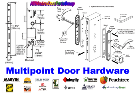 Fuhr Multipoint Locking Hardware For Doors, snd Fuhr Multi Point Extensions. Patio Door Replacement Hardware - NOTE: This assembly is for old doors and long multi-point units from 80" H up to 96" doors. In Addition to what Is shown below where there are extensions included.
