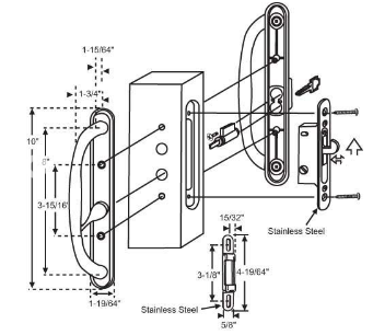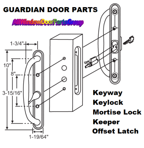 Guardian Deluxe White, Patio Door Handle Set with Key-Lock and Offset Latch (as shown). Key, Keyway, and Mortise Set Lock or Keeper. These are the Deluxe Sliding Patio Door Handle Set Replacements used on many upper grade patio doors. Please review all details before ordering. Please Note the "OFFSET LATCH" (it is not centered) and 3 15/16" Center-to-Center Screw Holes.