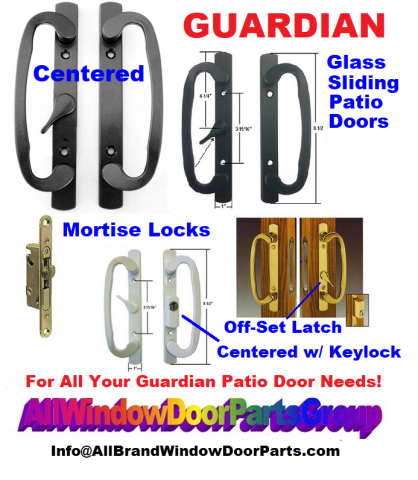 Guardian Sliding Glass Patio Door Handle Set With Centered Latch Assembly and New Mortise Lock. Sliding Glass Patio Door Handle Set With New Mortise for that Old Guardian Glass Slider. Door Handle Set With "Centered Latch" and Standard Mortise Option Is Included - No Keylock or Cylinder Included. Your choice of White, Polished Brass, Antique Brass, Brushed Chrome, Black, Beige or Bronze. Stampings , 2265, D466787, Guardian and others.