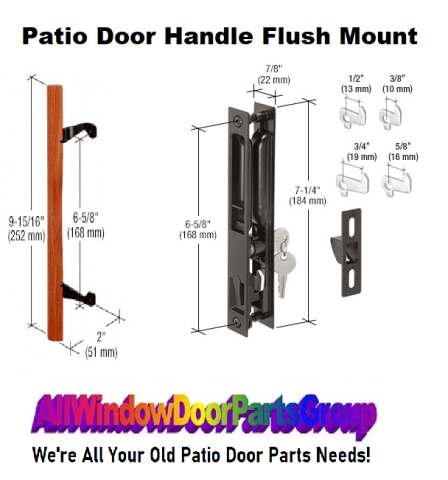 Guardian Glass Patio Door Keyed Handle | Flush Mount, #C29-PE BLACK wirh Wood Handle and Black Trim. Flush Mount Guardian Style Sliding Patio Door Replacement Handle Set. This Is the Model C29-PE-BLACK - Sliding Patio Door Flush Mounted Style Handle Set Configuration AS SHOWN - Also available in White - if specified in the "comment section" at checkout.