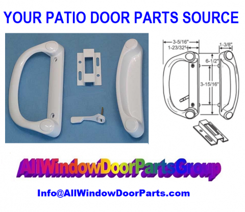 Guardian Glass | Sliding Patio Door Replacement Handle Set - White - Sliding Patio Door Handle Replacement Set | 3 15/16" Hole Center to Center with Latch Keeper. Fits some old Guardian Tempered Glass Doors, Silverline, Andersen, PPG Herculite and some others. MODEL # POIEBWHT (see picture and detail measurements) Patio Door Handle Parts / Door Pulls. No Mortise Lock Included. No Keyway or Key Cylinder.