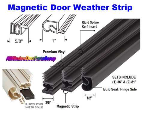 Steel Door Seal Weather Strip Set | Magnetic Kerf Insert - Guardian Glass Door Magnetic Door Seal Set – Kerf Insert Set - Two (2) Pieces at 84” lengths and One (1) 36” for a standard sized steel entry door - White, Bronze, Beige Color. Specify Color In the Comment Section at Checkout. If no color is specified, we ship Bronze.