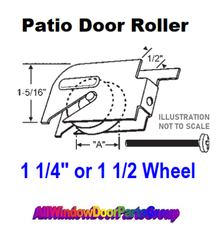 Guardian Patio Door Adjustable Roller / Wheel Assembly, Single Wheel Type Replacement as Shown. Patio Door Single Wheel / Roller Assembly, Adjustable Roller Unit ZYD Housing, Replacement Hardware Roller Part for Sliding Patio Doors. Priced Per "PAIR". In the comment section at Checkout specify 1 1/4" or 1 1/2" Diameter wheel.