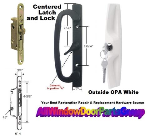 Guardian Sliding Patio Door Handle Set in Polished Brass with Exterior White Blade Pull Assembly and Keylock, Keys and Keyway. Sliding Patio Door Handle Set with the Centered Latch Position in Polished Brass | Includes the new Keylock Assembly in an outside White Handle As Shown with KEYS AND NEW KEYWAY and the new Mortise assembly. # GPDCLPBS. See Pictures Below.