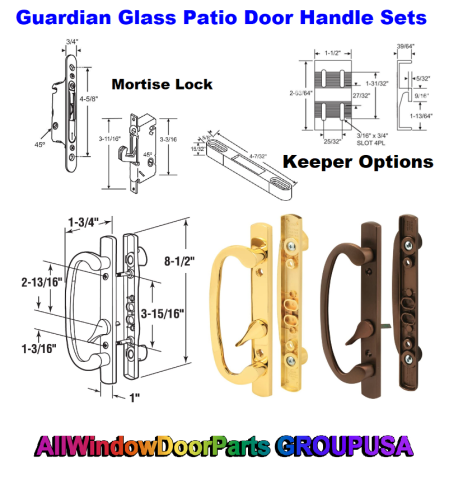 Guardian Glass Sliding Patio Door Handle Set as Shown. Guardian Sliding Patio Door Handle Set, Off-Set Latch Assembly and Mortise with either, the Four (4) Slot Keeper or Optional Narrow Style Keeper as Shown (no keylock). GPD-NOL-WH, Unit Assembly in White. New Style with same design handles inside and out.