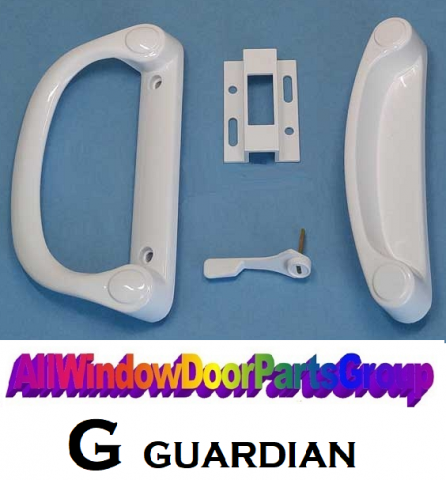 Guardian Silverline Sliding Tempered Glass Patio Door Handle Replacement Set, White Only, 3 15/16" C to C Hole Spacings and overall, 6 1/2" Height.