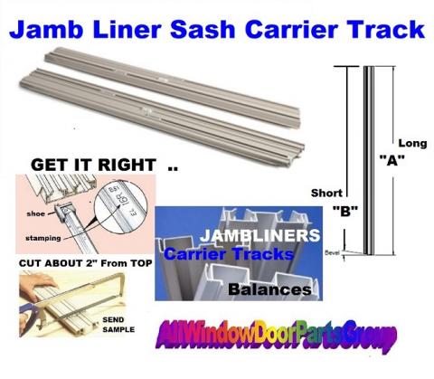 Sash Carrier Track | Jambliner Kits - Double Hung Windows, 50" to 56" Overall Long Side Length. Window Replacement Jamb Liners and Sash Carrier Track Kits - 50" to 56" - complete with Balances as specified by you. Window jamb liner kits for double hung windows from 1970's, 1980's and 1990's. One (1) Pair of Plastic Carrier Track Assemblies (measured by overall length) and include one pair of vinyl jamb carrier tracks" in Beige or White. Your AWDP Group USA and WeFixItUSA offers these for BF-Rich, Bilt-Best, Oldach, Caradco, American Craftsman, Crestline, Croft, Eagle, Jeld Wen, Kolbe, Lincoln, Marvin, Integrity, Ply-Gem, Windsor, Starline, Traco, Weather-Shield, Better-Bilt, Craftline, Norco, Rivco, Wenco, Windsor and others.