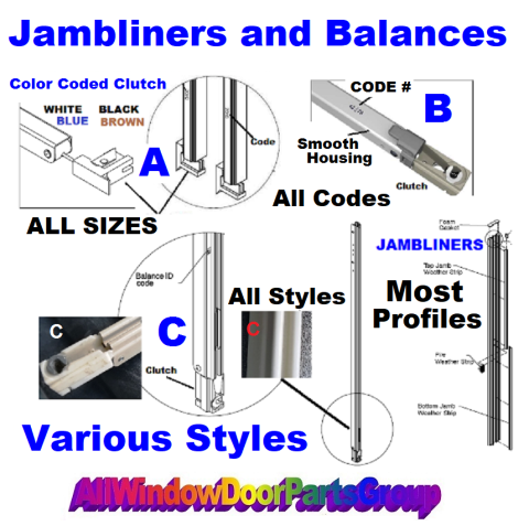 Window Balances, Jamb Liners, Sashes, Weather Strip and Glazing Bead Replacements - Alenco, American-Craftsman, Andersen, Arcadia, Columbia, Craftline, Crestmark, Crossly, Daryl, Entry-Gard, Kinco, Kinro, Malta, Marvin, Case-Master, Norco, Integrity by Marvin, Outlook, PGT, Pozzi, Rivco, Silverline, SNE, Thermal-Gard, Monarch, Truth, All-Weather, Alpine, Amerimax, Amsco, Aristokraft, Atrium, Biltbest , Caradco, Cascade, Certainteed, WinDor, Crestline, Vetter, Croft, Eagle, Guardian Glass, Hurd, Jeld Wen, Kasson & Keller, Kas-Kel, Kolbe, Lincoln and many others.