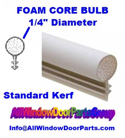 Over the years many older foam filled weathertrip parts and seals have changed to hollow bulb type seals; Buying your weatherstripping for doors and windows online is easy if you're dealing with the pros at Biltbest Window Parts DIV. of AllWindowDoorParts GROUPUSA! Volume discounts for large volume 500' Rolls available; FREE PARTS ID and HELP ONLINE -- foam filled weatherstrip, kerf weathserstrip, hollow core foam seals, bubble seals as well. 1/4" inch diameter, foam filled window "kerf slot" sash and frame weatherstrip [WHITE] Also available elsewhere on this site in smaller rolls , 50' and 25' - and you won't find this at your Home Depot, Lowes or Ace hardwqare stores.