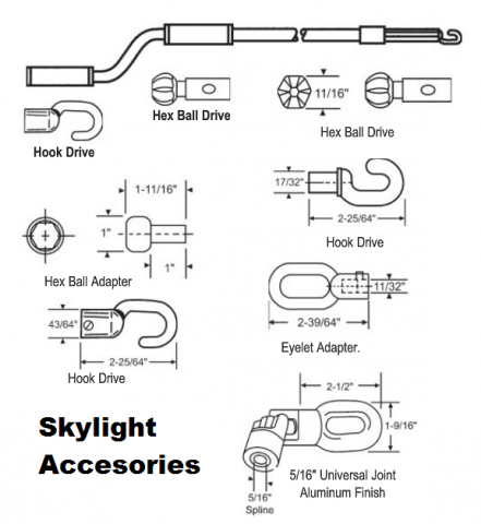 Manual Skylight Operators | Straight or Angle Drive | Not Electric | Hex-Ball Adapter Included