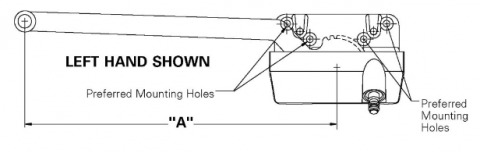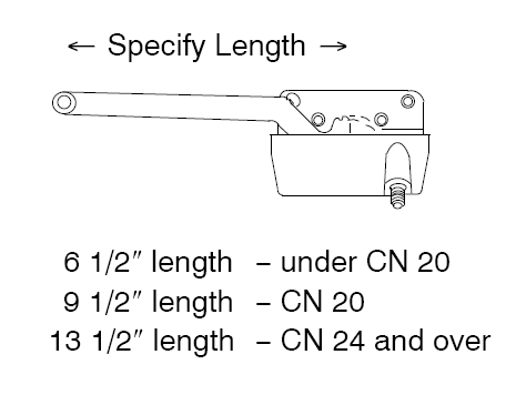 Single Arm Roto Gear, Special Offset Arm Casements and Casemasters between 1976 − 1982, butt hinge and or radius or polygon shapes until 1990; Originally available in three (3) arm lengths - 6 1/2", 9 1/2" and 13 1/2" ; Customer must specify arm length measured from center of roto−gear to end of the arm; If you need the 6 1/2" , Order the 9 1/2" as replacement part; Comes in right hand or left handing, in 9 1/2" or 13 1/2" arm lengths only. Shipped complete with # PPF-54 crank handle and screws.