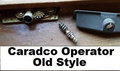 Old Caradco Casement and Awning Window Replacement Parts - Crank Operators, Left or Right Handing Caradco Casement and Awning Window Operator Replacement Parts: These Old Style Entry-Gard Operator Units used on your old Caradco Casement window series. Standard unit (as shown) has the 4 7/16" "B" Arm Length - PLEASE SPECIFY Handing in the "comment section" at Checkout. IF NONE SPECIFIED, WE SHIP - LEFT HANDING - SEE DIAGRAMS BELOW.