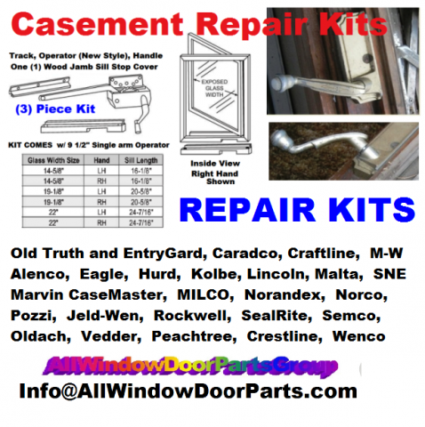 Old and Obsolete Casement Repair Kits, out-of-production casement upgrade sill stop kits and packages for updating old operators, cranks, handles, wood bottom sill stop kits and related parts from years ago by Truth, EntryGard, BiltBest, Caradco, Craftline, Pella, Alenco, Therma-Tru, Eagle, Hurd, Kolbe, Lincoln, M-W, Malta, Marvin, Norandex, Norco, Pozzi, Jeld-Wen, Rockwell, Seal-Rite, Semco, Oldach, SNE, Vedder, Peachtree, Crestline, WeatherVane, Wenco, Weather-Shield, Windsor, Acorn, Barber & Ross, BetterBilt, Quaker and Traco from 1960s, 1970s, 1980s - Let Us Help Identify-Your-Parts.