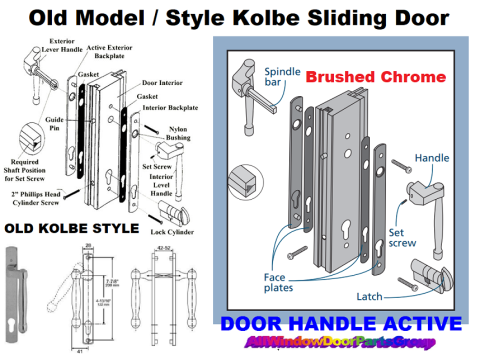 Old Kolbe Sliding French Door, Active Drop Handle Style in Brushed Chrome - Hard to find, Sliding Door, Active Handle Set in Brushed Chrome (closest to a Satin Nickel). Many may have the old Fuhr Multipoint Inline Slider Multipoints. Handle Set (AS SHOWN BELOW). ACTIVE DOOR WITH CYLINDER DOOR HANDLE REPLACEMENT PARTS PACKAGE AS SHOWN. Consists of ONE (1) Active Side Handle Assembly in Brushed Chrome These replacement handle sets are in VERY LIMITED SUPPLY.
