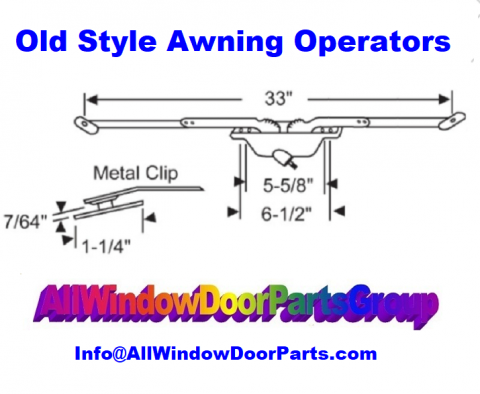 Old Style Awning Operator | Obsolete Roto Gear Units | Awning Split Arms, 33" Total Width Roto-Operator Obsolete Wood Awning Split Arm Handle not included. Only available finish is Aluminum - if other color needed you will need to paint it yourself. SEE PICTURE BELOW FOR DETAILS.