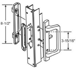 Chestnut / Dark Bronze PGT Sliding Patio Door Replacement Handle Set Assembly As Shown. No Key Lock. PGT Sliding Patio Door Replacement Handle Set Assembly With Mortise Only for Active Door. POFRO-8BZ, Color Bronze - Please see the Picture Schematic for Specs and Measurements. This is a special order item and is non returnable.