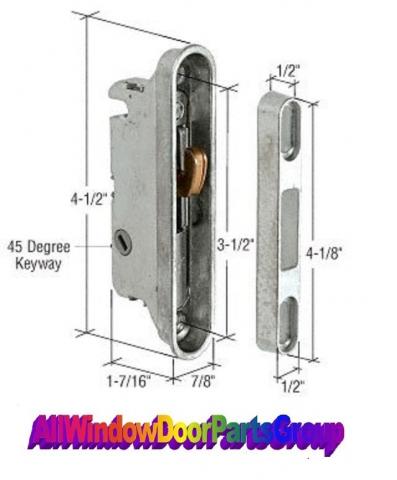 PGT Style Glass Patio Door Mortise Lock and Keeper Assembly. For some wood or aluminum Patio Doors. This is the # PGTPL020A9, Sliding Patio Door Mortise Lock and Keeper Set. SEE PICTURES AND CONFIRM YOUR MEASUREMENTS AS SHOWN BEFORE ORDERING. Anti Lift Protection, this patio door mortise lock is constructed from steel. It features a keeper that integrates into the lock body for positive anti lifting protection and a steel shank hook.