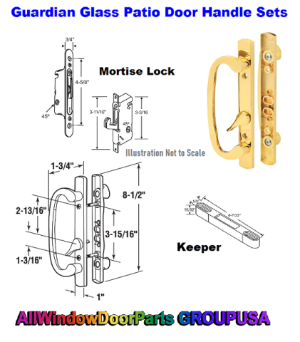 Polished Brass Patio Door Handle Set Replacement with the Off-Set Key Lock Latch - Semco Style, Sliding Glass Patio Door Style. Finish. Includes the Inside Patio Door Handle with the Offset Latch Assembly (SEE DIAGRAM) with Exterior Clam Style Loop Handle. This Unit Includes The Keyway Lock Assembly and Mortise Lock.