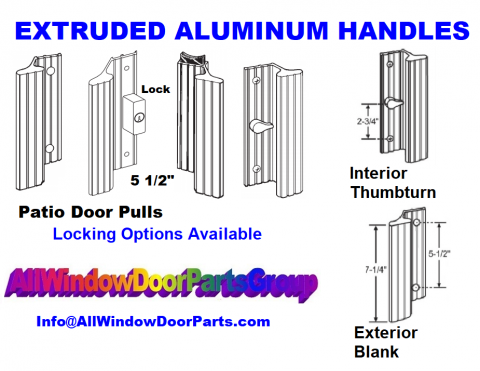 Sliding Patio Door Aluminum Handle Set Replacements - Extruded Aluminum Mill Finish or Bronze Aluminum Available - No Key Lock Included. Sliding Patio Door Handle Set With 5 1/2" Center To Center Hole Alignments. No Key Lock Included. AS SHOWN IN PICTURES - Patio Door Handle Set Assembly With Thumbturn On Inside, Part # PO-IFP-KW-MILL Replacement Handle Set Assembly Please see the Pictures and Measurements for all details, a special order item and is non returnable.