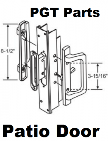 This is a PGT Patio Door Replacement Handle, Style Model # PO-FRO-33-WHT Color White. Please see attached Picture Schematic and Measurements; Special order Item and Non Returnable; Otgher colors and finishes may be available; .