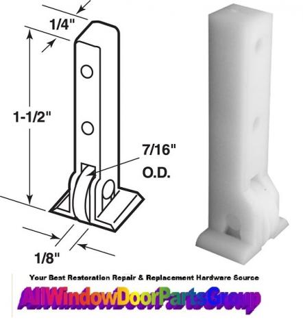 Top of the line products for your old windows and doors - direct from your AllWindowDoorParts GROUP-USA - these sliding window rollers have a 7/16" flat nylon roller; Top notch nylon roller assembly housing with nylon roller - used for sliding windows, horizontal sliders, gliders / gliding window parts; Roller assembly constructed from nylon and in a nylon housing with flat edge roller as shown; Special order item and is non returnable.If you need more help or assistance, email us and send good, clear pictures and our window and door hardware experts will assist you in finding those "Hard-to-Find" .. Obsolete Parts.