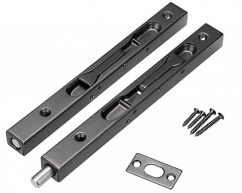Two (2) Each , Per Set, Swing Door Flush Bottom Bolt Locking parts, 8" concealed security lock for French Type Doors, Composite Doors, Wood Doors, Double Doors, Dummy Doors - these have a Black Brush Stainless Steel Finish