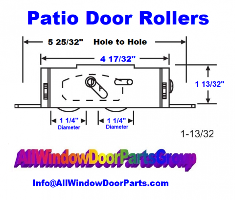 Tandem Patio Door Roller Replacement Set - Priced Per Set of Two (2) Units As Shown .. ZYD Housing and Steel 1 1/4" Diameter Rollers to replace the old patio door roller wheel assembly as shown to fit Guardian, PGT, PPG Herculite and other brands of patio sliding glass doors. SEE DETAILS AND MEASUREMENTS.
