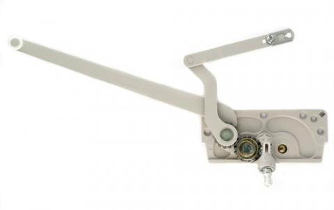 Patented dual arm action pushes the sash open while pulling the hinge side of the sash to the open position. When properly installed this operator results in almost effortless operation of both casement and awning-type windows of many sizes and weights.