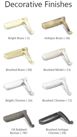 Colors and Decorative Finishes for Window and Door Hardware Parts - Standard Colors and Upgrades [Special Orders]