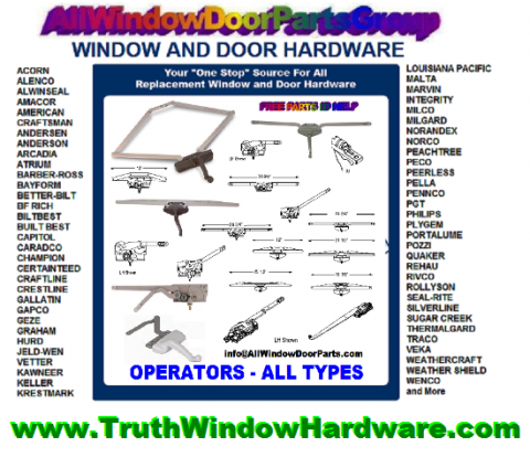 Homeowners, Handymen, Repair Contractors, Glaziers and service Technicians. We have the largest inventory access to Truth Hardware Parts Nationwide and many other window and door brand products like: Caradco, Craftline, Pella, Alenco, Therma-Tru, Eagle, Hurd, Kolbe, Lincoln, M-W, Malta, Norco, Norandex, Norco, Pozzi, Jeld-Wen, MilGard, Rockwell, Seal-Rite, Semco, Sealrite, Oldach, Outlook, Norco, Vedder, Peachtree, Crestline, Weather-Vane, Wenco, Weather-Shield, Windsor, Acorn, Andersen, Alenco, Anderson, Barber-Ross, BetterBilt, Crestmark, PGT, Phillips, PlyGem, Quaker, Traco, Pella, Alenco and many others.