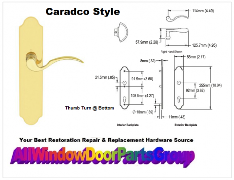 Wood Door Handle Set Replacement Polished Brass | Old Caradco Style Bottom Key Locking Unit - Replacement Handle sets for old Weathershield Swing Doors; FOR 1 3/4" THICK, WOOD DOORS, ACTIVE DOOR WITH KEY CYLINDER - POLISHED BRASS FINISH, Model # FAA-RBIE-RPP-WSHLD - Note: Very Limited - Special Order Only.