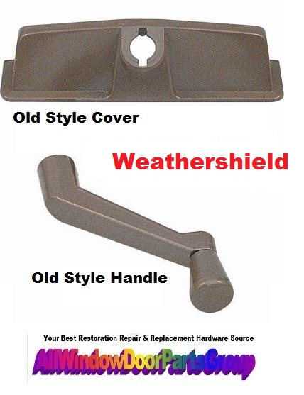 Weather Shield Replacement Parts - Old Style Casement Window Covers and Handles. Old style casement window repair parts for old Weathershield windows. Old Style WeatherShield Casement Window Crank Handle --- PLASTIC COVER AND DROP STYLE HANDLE. AS SHOWN IN PICTURES.