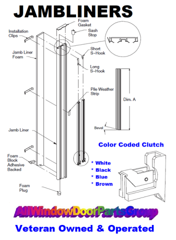 Jamb Liner Replacement Pairs, Color Coded Clutch Style for Weather Shield Double Hung Windows. Overall Lengths, 62" to 72" Length, Jmab Liner Pairs / Plastic Sash Track Assembly Carrier Complete with Balances.
