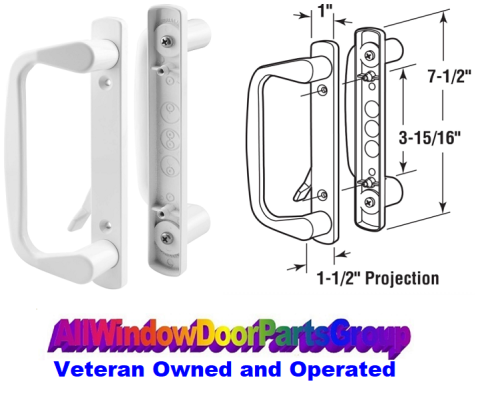 This patio door handle set has matching inside and outside pulls. It features a white finish that is non-handed and used by a variety of older door manufacturers. This is a low profile non-keyed handle set with "offset" latch. Please review all dimension before ordering. Sliding door handle set constructed from diecast and comes in a white painted finish, low profile, non-handed design, and it can be used on both left and right-handed sliding patio doors.