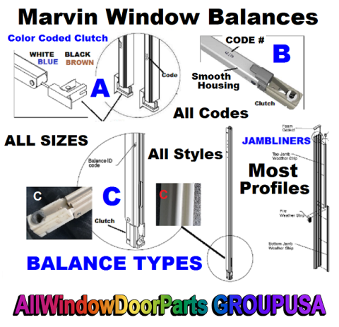 Balances For Marvin and Integrity by Marvin, Single-Hung and Double-Hung Window Balance Replacements. Marvin Balance Replacements | Integrity Balances All Sizes - Marvin and Integrity Single Hung or Double Hung Window Replacement Balances - All Styles, All Sizes, All Stamping Numbers - PRICED PER PAIR.  IN THE "COMMENT SECTION" at Checkout Please Specify Your Parts as Follows: