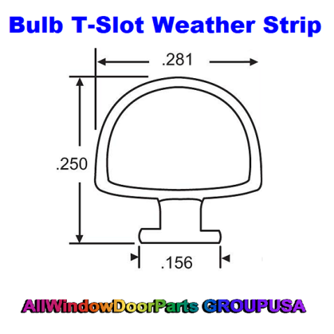 Window Weather Strip | Bulb-Type Compression Seal, T-Slot Base Insert, See Dimensions Below - ITEM IS PRICED PER 100' ROLL - available in BLACK ONLY. Best grade flexible thermoplastic with the functional performance and properties of a conventional thermoset rubber type seal flexible compression bulb to act as a mechanical seal with little resistance.