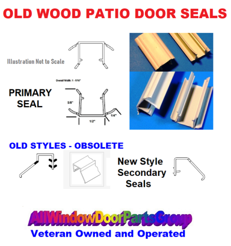 Old Style Wood Sliding Patio Door, Primary and Secondary Weather-Strip Sets | Head Jamb, Side Jamb Inner and Outer Seals. Please look at diagrams and pictures before ordering. These are hard-to-find patio door seals. Tan color only and customer must field cut to length as needed. Fits several older model sliding wood patio doors - Guardian Glass, Alenco, Oldach, Wenco, Traco, Weather-Shield, Lincoln, Cardinal Glass, Integrity, Pella, Caradco, Marvin, Hurd and others.